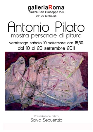 Dal 10 al 20 settembre, alla Galleria Roma di Siracusa (Piazza San Giuseppe 1/2/3), si terrà la mostra personale di pittura di Antonio Pilato. La presentazione è di Salvo Sequenzia