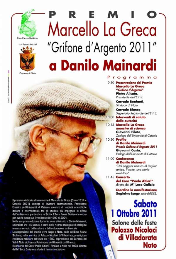 Il premio è dedicato alla memoria di Marcello La Greca, zoologo di levatura internazionale, professore emerito dell'Università di Catania, membro di società scientifiche italiane e internazionali, tra gli studiosi più impegnati in difesa dell'ambiente, in particolare in Sicilia. L'Ente Fauna Siciliana lo onora per averlo avuto suo presidente dal 1992 al 2001 assegnando ogni due anni ad un personaggio di particolare levatura sul piano della ricerca naturalistica e della sua divulgazione e che abbia espresso uno speciale messaggio culturale con la propria opera il “Grifone d’Argento” che evoca il simbolo della associazione.