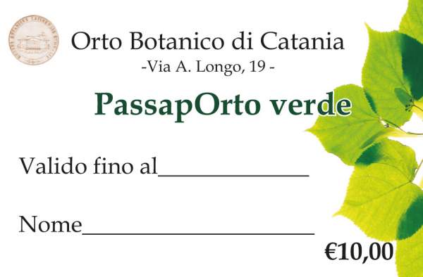 Sarà in vendita a partire da lunedì 5 dicembre l'offerta di dicembre per i visitatori dell'Orto botanico di Catania: il PassapOrto verde. Si tratta di una carta nominativa riservata agli studenti universitari e ai residenti nella provincia di Catania che permette l'ingresso al giardino botanico dell'Università di Catania nel corso di 12 mesi dalla data di acquisto.