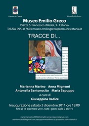 “Tracce di...” arricchisce il calendario delle mostre allestite al Museo Emilio Greco di Catania con i lavori di quattro donne – Marianna Marino, Anna Mignemi, Antonella Santonocito, Maria Sapuppo – che compongono un gruppo dinamico, che ha messo a confronto le rispettive osservazioni per offrirci, attraverso forme e colori, le diverse emozioni. Una mostra d'arte collettiva, nata dallo scambio di esperienze di quattro artiste che privilegiano i temi dell'identità e della spiritualità.