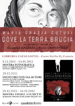 Mercoledì 28 dicembre alle 18, alla Libreria Cavallotto di Catania, sarà presentato il graphic novel Maria Grazia Cutuli - Dove la terra brucia (edizioni Rizzoli-Lizard), e sarà inaugurata la mostra di tavole a fumetti che affiancherà quella fotografica fino a domenica 8 gennaio ad illustrare le fasi creative del libro.