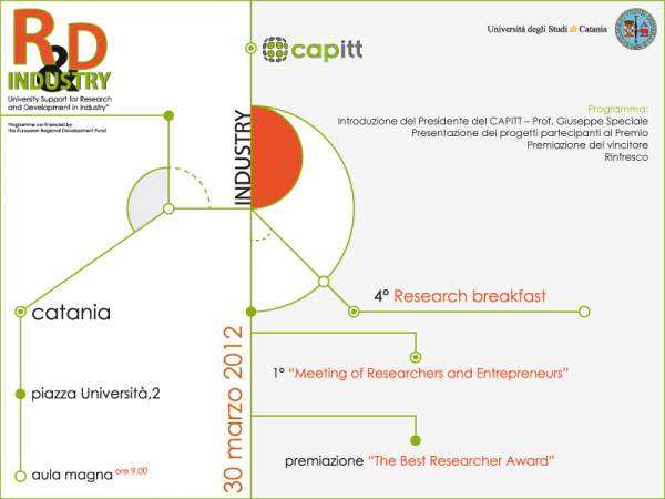 Venerdì 30 marzo alle 9, nell’aula magna del Palazzo centrale dell'Università di Catania, il Capitt (Centro per l’aggiornamento delle professioni e per l’innovazione ed il trasferimento tecnologico) organizza il primo Meeting of Researchers and Entrepreneurs, momento di incontro fra imprese e mondo della ricerca universitaria. La giornata è finalizzata a dare visibilità alle attività di ricerca sviluppate in Ateneo, al fine di stimolare occasioni concrete di collaborazione e sviluppo congiunto di progetti di ricerca.
