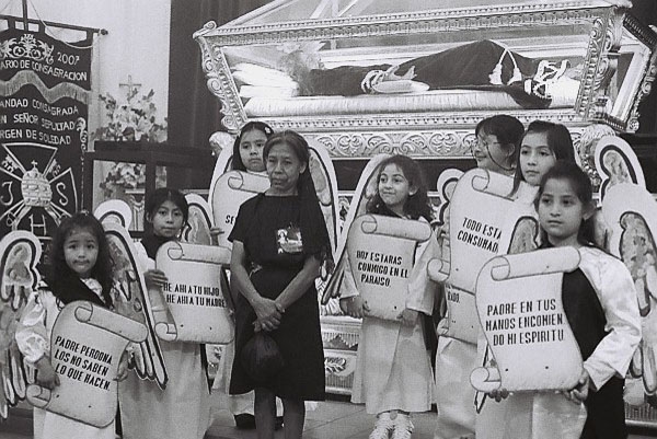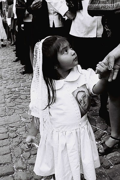 "Non ho mai amato fotografare feste religiose; ho sempre provato la sensazione di momenti forzati; ma mi trovavo in Guatemala per realizzare un reportage sul percorso di un missionario e di conseguenza sulla vita degli indios… ed era, casualmente, Pasqua. Iniziavano i preparativi e cominciai, quasi per caso, prima ad osservarli, poi a seguirli, a sentirmene partecipe; infine, a restarne assolutamente coinvolta. Sui loro volti: amore, tanto amore, ma anche dolore, immenso dolore; speranza (forse?), ma, soprattutto, rassegnata disperazione. Il dolore di Cristo era il loro dolore; le spine conficcate nella sua fronte sono le stesse spine che, da sempre, trafiggono il loro cuore: dimenticati dal mondo, sconosciuti ad una umanità indifferente. "