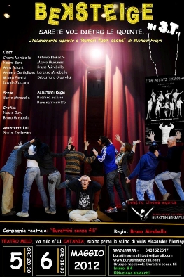 Sabato 5 (ore 20:30) e domenica 6 maggio (ore 18:30), al Teatro Milo di Catania (via Milo,11), andrà in scena la Compagnia "Burattini senza fili" con lo spettacolo Beksteige, liberamente ispirato a "Rumori fuori scena" di Micheal Frayn. La regia è di Bruno Mirabella.