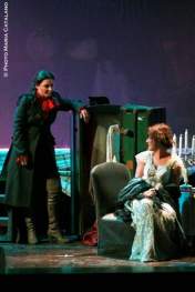 speranza, del cambiamento, della musica, I’aria, il fiato, di una storia in fieri, come un enorme, grande alito che ognuno può condividere. In questo spazio, alla ricerca di questa musica, l’incontro di due donne, realmente e storicamente esistite, prelevate dai libri di storia, e assunte a simbolo del destino dell’universo femminile, amato, tradito, capito ma, forse, mai profondamente. è un modo, il più antiretorico possibile per rileggere l’impresa garibaldina in Sicilia, un’impresa immensa e dai toni epici, qui attraversata dall’ottica demistificante delle donne. Emilia Testa, un’artista che sta per lasciare le scene per volontà dell’uomo che ama, Jessie White, giornalista inglese al seguito di Garibaldi, che sulla sua pelle ha vissuto l’eroismo di quei giorni e il disinganno seguito alla memorabile impresa dei Mille, da lei coraggiosamente documentato con inchieste e sulla povertà e il degrado meridionale, soprattutto nelle zolfare. Dal fondo scuro della sua memoria si sprigionano quelle sonorità mediterranee, carnali, vitali, assetate di liber tà e di giustizia che sono la voce arcaica della gente del sud. Alla musica è affidato il senso lirico ed eroico delle gesta garibaldine, capace come è di proiettarci su un tempo mitico e ricreare quelia temperie di grandiosità leggendaria che era il respiro dell’epoca...