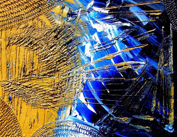 Nelle foto: un'opera astratta di Pier Domenico Magri ("Solo scudo", olio su tela, 2007) e un'opera figurativa di Fortunato Orazio Signorello ("A pois", tecnica mista, 2001).