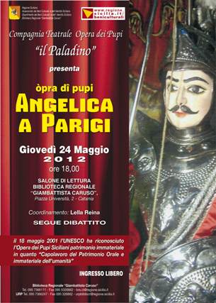 Giovedì 24 maggio alle 18, alla Salone di lettura della Biblioteca Regionale Giambattista Caruso di Catania (Piazza Università, 2), andrà in scena l' Òpra dî pupi “Angelica a Parigi”.