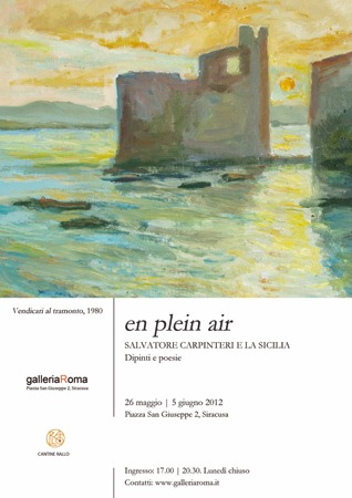 Dal 26 maggio al 5 giugno, alla Galleria di Roma di Siracusa, si svolgerà la mostra En Plein Air di Salvatore Carpinteri, intellettuale del ‘900 che ha raccontato l’anima della Sicilia attraverso dipinti e poesie. Il reading di poesie è a cura di Lalla Bruschi.