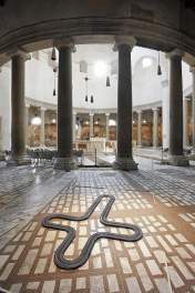 Progettate, ritrovate, disvelate le ventuno croci di Iacchetti attraversano e ridisegnano materiali e funzioni: dall’argento al ferro battuto, dal vetro soffiato alla fibra di carbonio, dalla terracotta alla carta, dalla pista elettrica per macchinine fino a un materasso trapuntato, anche questo a croce, dove abbandonarsi sfiniti al sonno, a braccia aperte come i neonati, dopo le fatiche del giorno. Opere che Iacchetti ottiene per addizione o sottrazione di elementi. Oppure sperimentando, grazie alla tecnologia (alcuni sono appunto prototipi), alternative costruttive con i materiali prescelti.