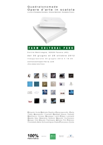 Favara Reloaded, un evento organizzato dal Comune di Favara e da Farm Cultural Park. Farm Cultural Park è un progetto ambizioso che nasce recupero di alcuni edifici abbandonati del Cortile Bentivegna di Favara (AG), e che ha l’obiettivo di usare l'arte come strumento per dare una nuova identità alla città. Un parco culturale turistico accessibile a tutti, dove si mescolano cibo, arte, generi, voci e lingue, museo e mercato, artisti e architetti italiani e internazionali, vecchi palazzi che rimangono abbandonati ma ancora per poco. Una parte della collezione Quadratonomade sarà esposta presso i Sette Cortili, cuore pulsante del progetto Farm Cultural Park, che in questa occasione festeggia il suo secondo anno di attività.