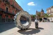 In mostra, a cura di Mercedes Auteri e Angelo Buscema, sono circa cinquanta opere, comprese quelle di grandi dimensioni e le istallazioni dell’ultimo periodo, che hanno per tema i paesaggi urbani, gli ingorghi stradali di auto, camion, moto e mezzi pubblici, le macchine agricole – trattori e mietitrebbia - e quei loro enormi pneumatici con cui percorrono la nostra contemporaneità e irrompono nei silenzi bucolici della campagna ragusana lasciando solchi inequivocabili. Gli stessi mezzi meccanici che, fatalmente, nel luglio dello scorso anno hanno posto fine alla vita dell’artista, vittima di un incidente in moto.