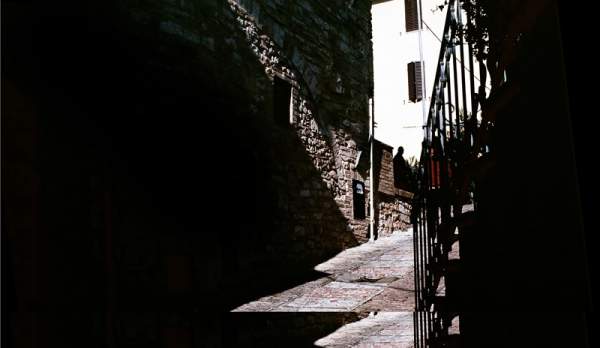 Le immagini di Rolando Marini propongono un discorso fotografico sul significato delle città antiche italiane, idealizzate attraverso i giochi di contrasto tra luce e ombra. Sono il risultato di un’indagine sul rapporto tra visione e illuminazione e più esattamente sulla capacità di trasfigurazione che può essere generata dalle linee di confine tra luci e ombre. Si tratta di uno sguardo rivolto alla capacità dei centri storici italiani di esprimere un particolare spirito della convivenza civile e dello spazio urbano: quello spirito che gli artisti del Rinascimento legarono al concetto di “città ideale”. Marini afferma che nel suo lavoro “non vi è alcun intento archeologico o di documentazione delle città; nessun motivo nostalgico”; si tratta di una ricerca espressiva che, in quanto tale, non ha intenti descrittivi. L'indagine fotografica di Marini rivela la inesauribile fascinazione che le città antiche sono in grado di generare, e lo fa attraverso i fasci di luce e i tagli di ombra che attraversano l'ambiente urbano, creando atmosfere sorprendenti che rendono metafisico lo spazio fotografato. Sulle strade, sulle scalinate e sui muri, il connubio tra luce e ombra sovrascrive altre entità figurative (segmenti e cunei luminosi, fasci di ombra, sottolineature di contorni o nuovi contorni) oppure ridefinisce l'unitarietà delle forme architettoniche, talvolta dilatandole, talvolta spezzandole. A questa trasfigurazione contribuisce una particolare caratteristica delle fotografie di Marini: la mescolanza tra il colore e quella impressione di bianco/nero provocata dai controluce, dal contrasto tra le luci e le ombre, spesso fatte di neri molto profondi.