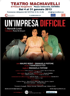 Da venerdì 4 a giovedì 31 gennaio, alle 21, al Teatro Machiavelli di Palazzo Sangiuliano, va in scena Un’impresa difficile di Hanoch Levin, con Mauro Serio, Emanuela Pistone e Francesco Foti. La regia è di Emanuela Pistone.