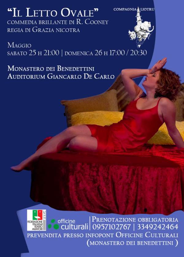Proseguono sabato 25 e domenica 26 maggio gli appuntamenti con gli spettacoli teatrali al Monastero dei Benedettini. Per l'occasione, l’Auditorium si trasforma in palcoscenico per raccontare le vicende piccanti e ricche di equivoci di Il letto ovale, una delle più celebri commedie dell’autore inglese Ray Cooney, messa in scena dalla storica compagnia Liotru di Catania.